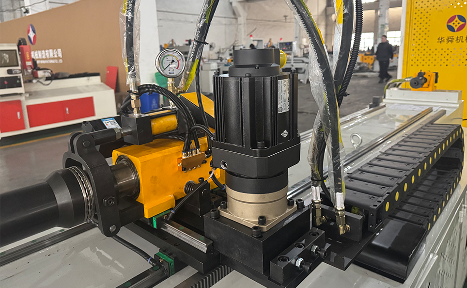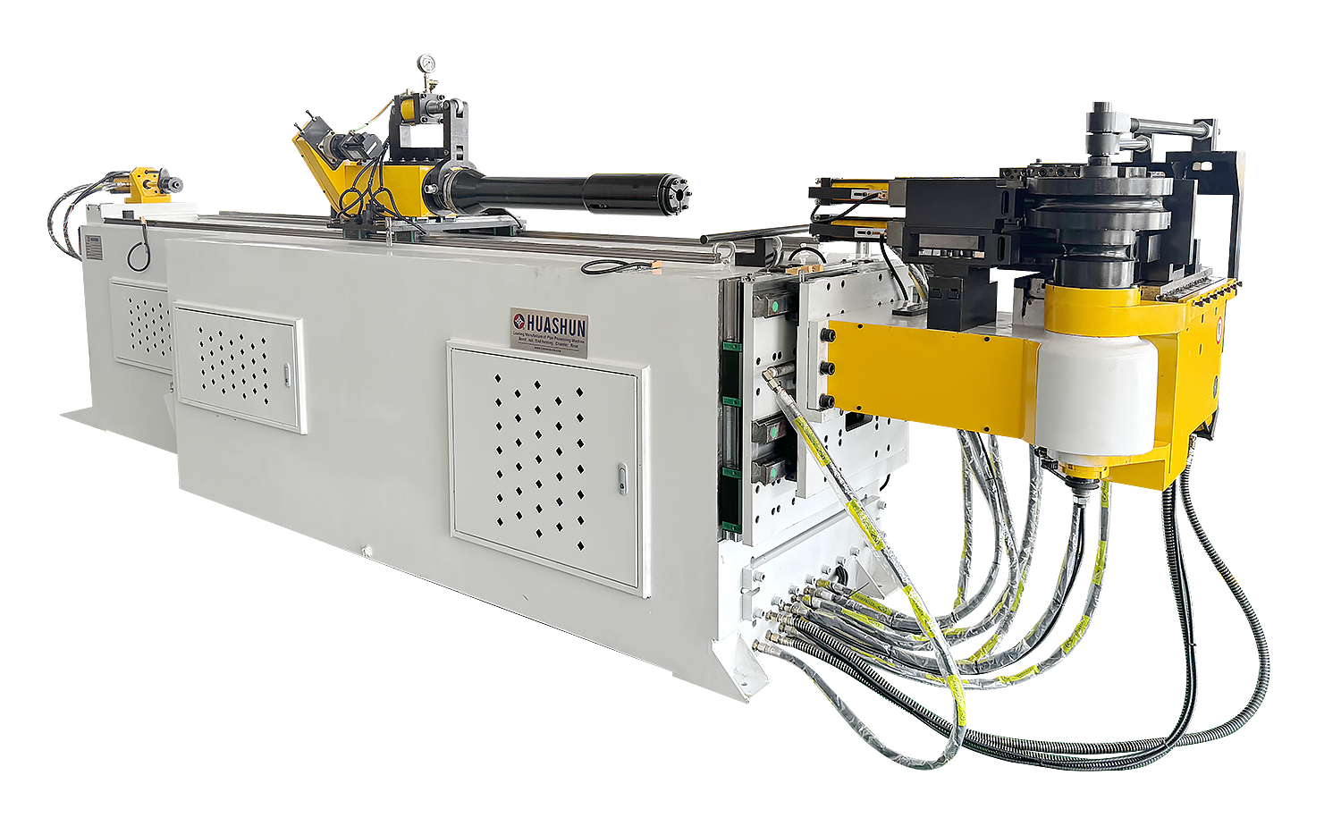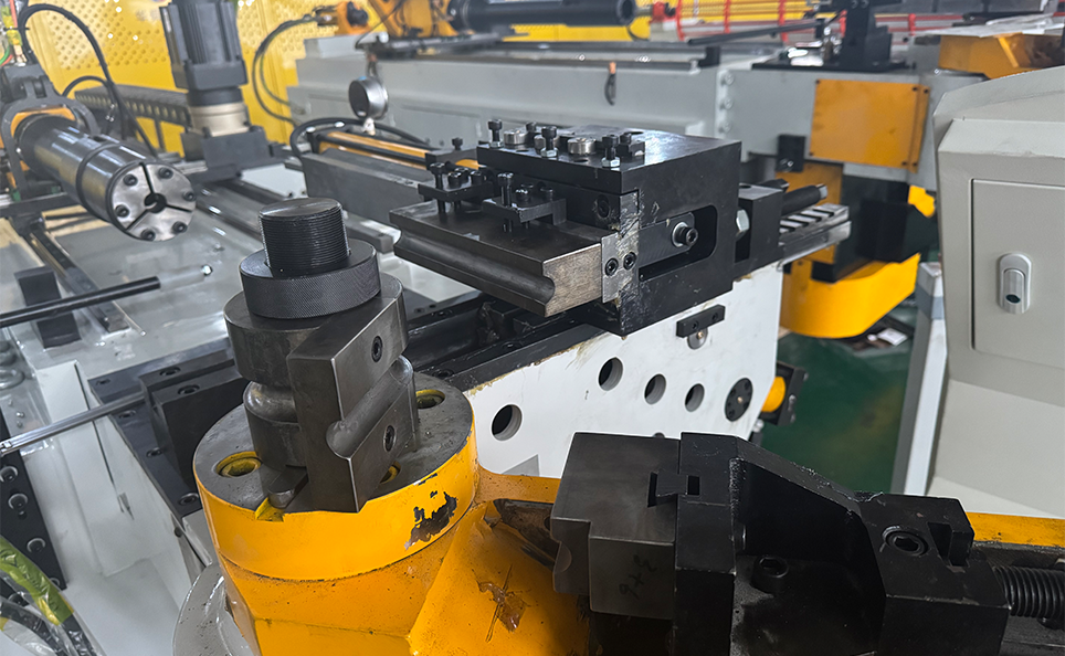 A mandrel lubricating system helps maintain smooth operation, while the wiper, clamping, and pressure die seats contribute to consistent, high-quality bends. The machine also features a centralized greasing system for lubricating all moving parts, reducing wear and increasing reliability.