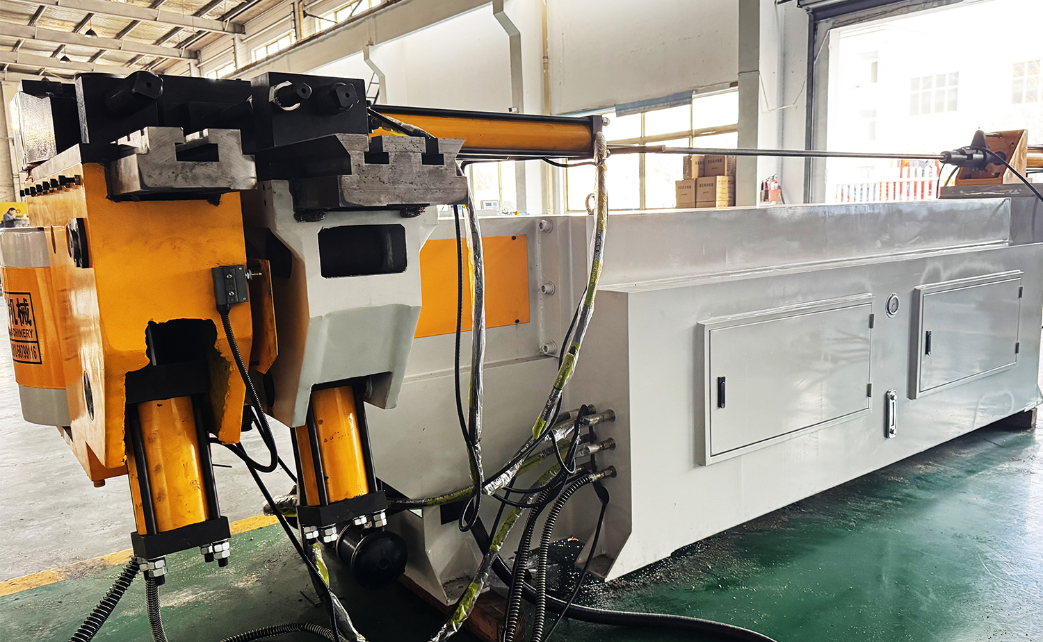 Includes water cooling, draw bending tooling, a wiper die bracket, a mandrel rod, and a toolbox with adjusted tools. Electric configurations available in 3-phase 220V, 380V, or 415V.