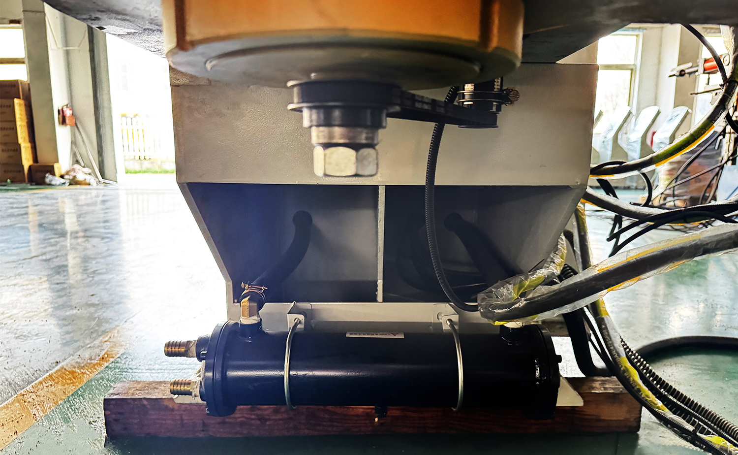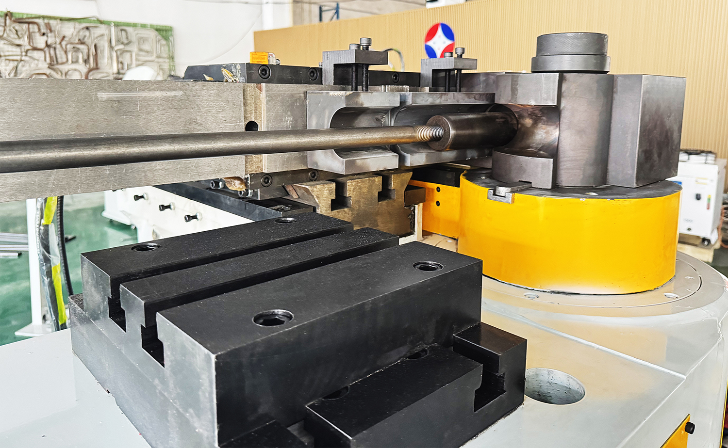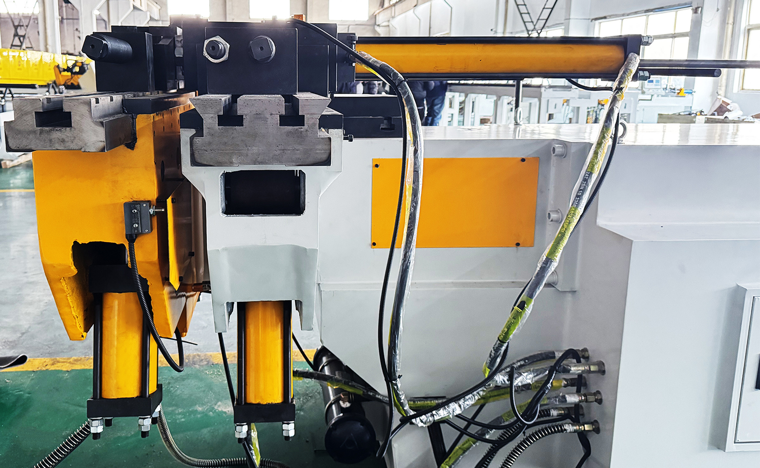 The bending axis is cylinder-driven, while feeding and rotation are manual, providing easy control and customization for various tasks.